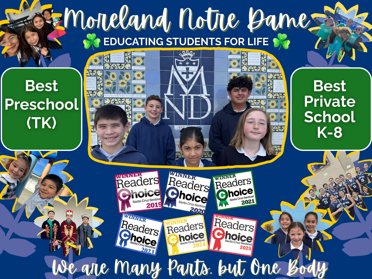 Moreland Notre Dame is not just a TK through 8 grade school, it is a COMMUNITY. From the students to the faculty to the principal, there is a genuine belonging and acceptance. The everyday smiles on the children say it all. The teachers at MND keep the students engaged and involved in their studies right from the very beginning. The updated technology and new elective courses for the 6th through 8th grades just make learning that much more fun. That even includes the after school sports programs that are available such as basketball, cross country and volleyball, just to name a few. As a parent, I've seen my kids grow and thrive at MND to only continue their education to high school and beyond with the educational foundation and principles they received at Moreland Notre Dame.